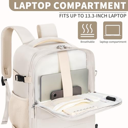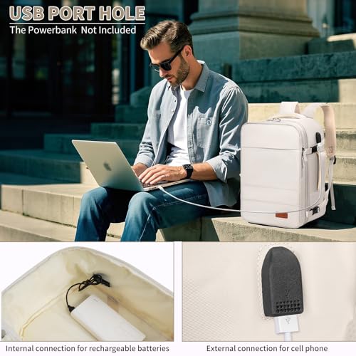 GMAK - شنطة ظهر للسفر للرجال والنساء من جي ام ايه كيه، شنطة ظهر بسعة 20 لتر مع منفذ شحن USB، شنطة ظهر للابتوب 15.6 انش، شنطة ظهر خفيفة الوزن كاجوال، شنطة امتعة للسفر والكلية والاعمال، بيج
