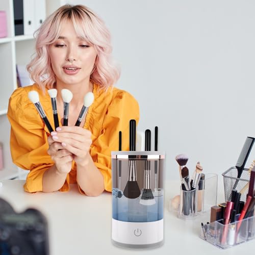 GMHLLES - آلة تنظيف فرش المكياج الكهربائية من GMHLLES، أداة تنظيف فرش المكياج، مجموعة تنظيف فرش المكياج الأوتوماتيكية بمنفذ USB للتنظيف والتجفيف لجميع أحجام فرش المكياج
