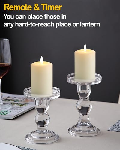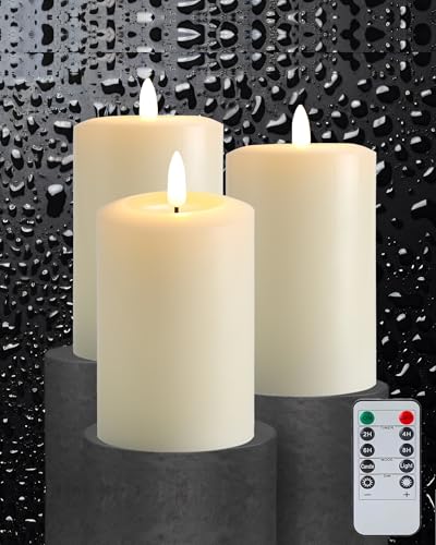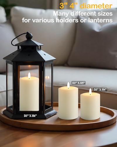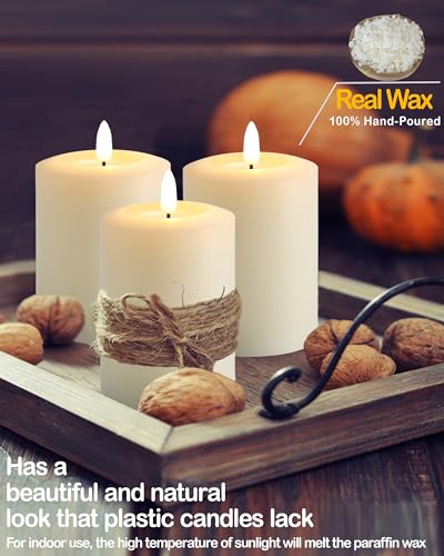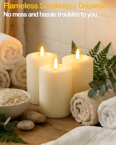 Gmnee - شموع وامضة بدون لهب 3 انش × 6 انش مع مؤقت عن بعد، شمع حقيقي، شموع عمودية عاجية، مجموعة من 3 شموع LED كبيرة تعمل بالبطارية للمنزل والمدفأة والقطعة المركزية وديكور ريفي ومنزل المزرعة من جمني