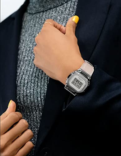 Casio - جي-شوك ساعة فضية للنساء GMS5600SK-7 مقاس واحد رقمي تناظري بمينا أبيض بسوار