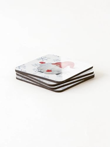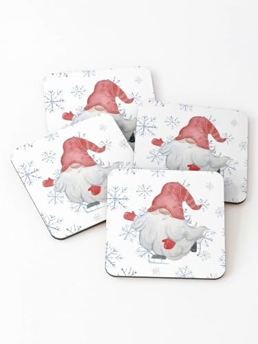 Generic - مجموعة قواعد اكواب بتصميم قزم احمر لطيف للكريسماس من جنوم، مناسبة للتزلج على الجليد على لوح التزلج (مجموعة من 4 قطع)