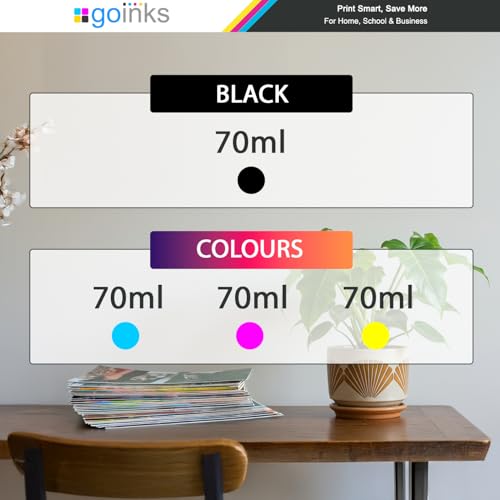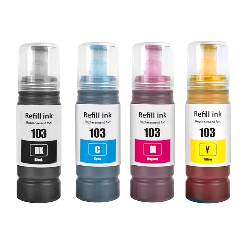 Go Inks - جو انكس مجموعة من 4 زجاجات حبر لاستبدال ابسون 103 متوافقة/غير او اي ام لطابعات ايكو تانك، اسود، ازرق سيان، ارجواني ماجنتا، اصفر، 70 مل