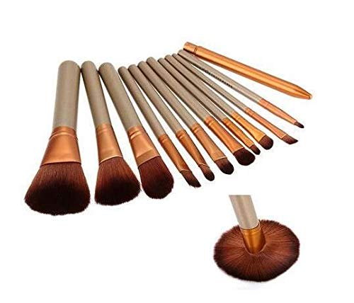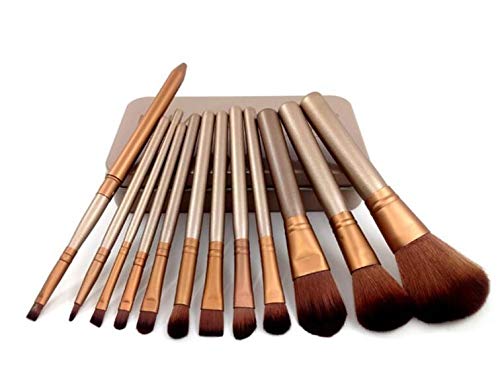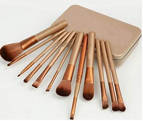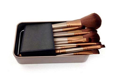 Generic - مجموعة من 12 فرشاة مكياج من شعر الماعز مع صناديق معدنية
