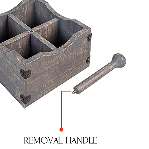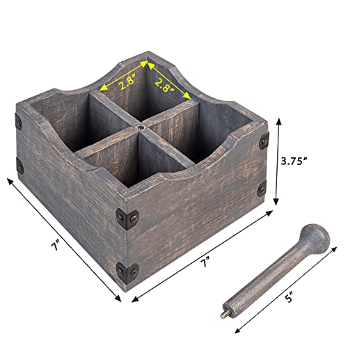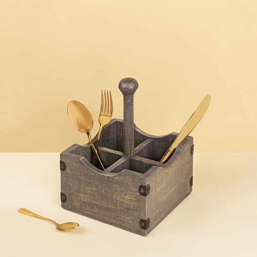 GoCraft - منظم أدوات مائدة خشبي مربع من جو كرافت يحتوي على 4 مساحات مقسّمة، وحامل أدوات فضية للمطبخ، مصنوع من خشب المانجو الرمادي المغسول، مع قضيب يدوي خشبي قابل للفصل.