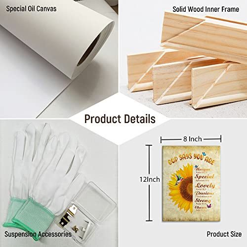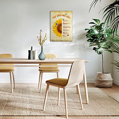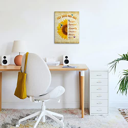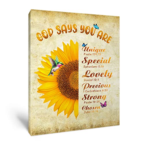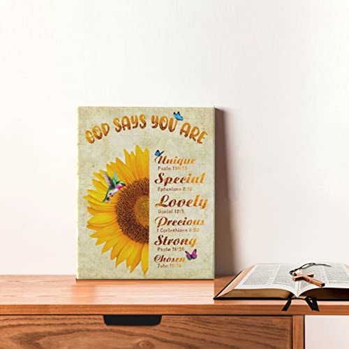 Puppettv - تابلوه حائط قماش بتصميم عباد الشمس وطائر طنان وفراشة مع عبارة «God Says You are»، عمل فني مسيحي ملهم لديكور الشقة وغرفة النوم والمطبخ والمكتب، جاهز للتعليق، 8×12 انش