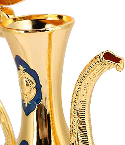 GODNOEI - طقم إبريق قهوة تركي معدني عتيق من جود نوي، طقم شاي تركي مع 13 كوب قهوة وصينية شاي حرفية لتقديم الشاي والقهوة والكابتشينو، لون ذهبي وفضي، هدية زفاف