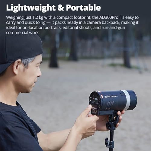 GODOX - فلاش كاميرا خارجي AD300 برو من جودوكس بقوة 300 وات ثانية، بنظام TTL، اتصال لاسلكي بتردد 2.4 جيجاهرتز، 1/8000 HSS، بطارية 2600 مللي امبير في الساعة لكاميرا كانون، نيكون، سوني، فوجي، اوليمبوس، بنتاكس
