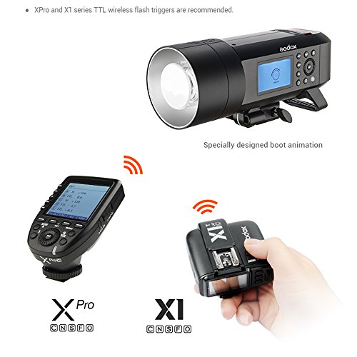 GODOX - فلاش خارجي الكل في واحد TTL من خلال العدسة 400Ws جي ان 72 بمزامنة عالية السرعة 1/8000 HSS وسرعة تدوير 0.01-1 ثانية ويعمل ببطارية ليثيوم لكاميرات كانون/نيكون/سوني/اوليمبوس/باناسونيك AD400Pro من جودوكس