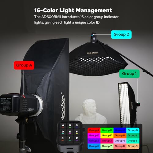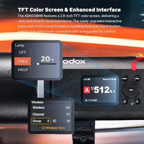 GODOX - فلاش ستروب خارجي AD600BM II، محمول بقوة 600 وات، مع نظام TTL لاسلكي 2.4G، سرعة تزامن عالية 1/8000 ثانية، وقت إعادة شحن بين 0.01 إلى 1.9 ثانية، ليد 40 وات، بطارية قابلة للشحن وقاعدة بوينز من جودوكس