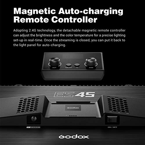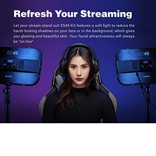 GODOX - مجموعة اضاءة LED اي-سبورتس ES45 بـ176 خرزة اضاءة CRI 96 TLCI 97، درجة حرارة الضوء 2800-6500 كلفن مع سطوع قابل للتعديل 0-100% وتدعم تحكم لاسلكي عبر التطبيق 2.4G من جودوكس