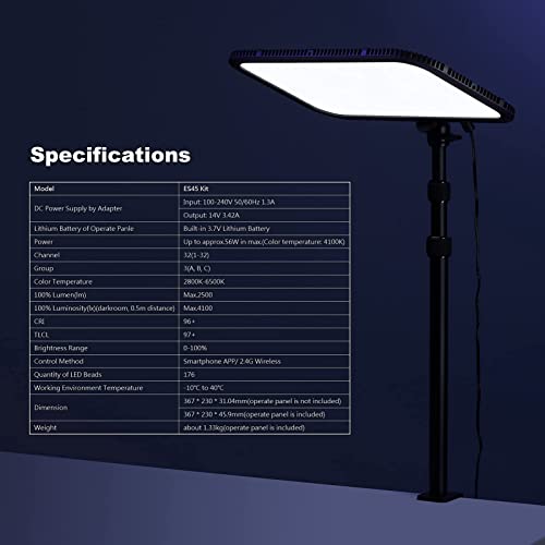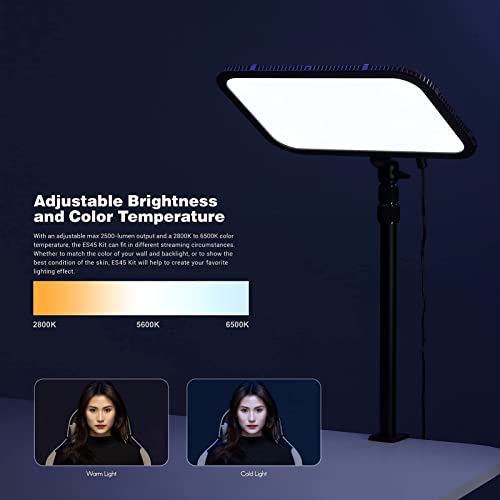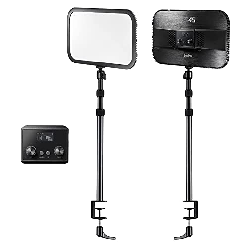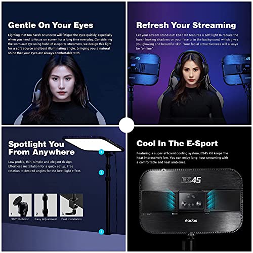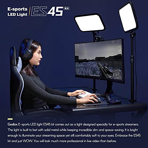GODOX - لوحة إضاءة LED للفيديو والرياضات الإلكترونية ES45 من جودوكس حد أقصى 2500 لومن 2800-6500 كلفن قابل للتعتيم بمشبك C للمكتب وريموت كنترول لاسلكي 2.4G لبث الألعاب ومؤتمرات الفيديو
