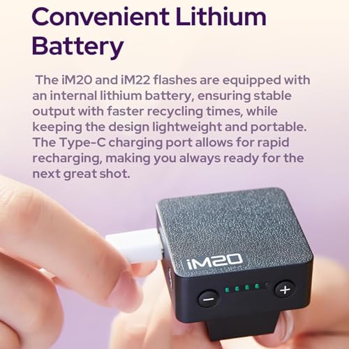 - فلاش كامل الطاقة 440 مرة: فلاش iM20 كامل الطاقة يصل إلى 440 مرة، وقت استعادة الطاقة حوالي 3 ثوانٍ، استجابة سريعة، جاهز لالتقاط اللحظة.