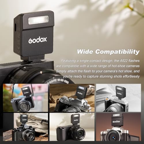 - 【 فلاش صغير بتصميم الجيب 】 بوزن 32 جم فقط ويستقر في راحة يدك، يسهل وضع فلاش الكاميرا الصغير جودوكس iM22 في جيبك أو تثبيته على الكاميرا مما يجعله سهل الحمل للغاية.