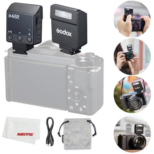 GODOX - غودوكس فلاش كاميرا iM22، فلاش صغير سبيدلايت، 440 فلاش كامل الطاقة، هوت شو اتصال واحد، بطارية ليثيوم مدمجة لكاميرا فوجي/سوني/نيكون/كانون/اوليمبوس (iM22)