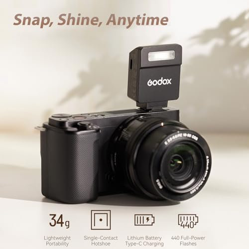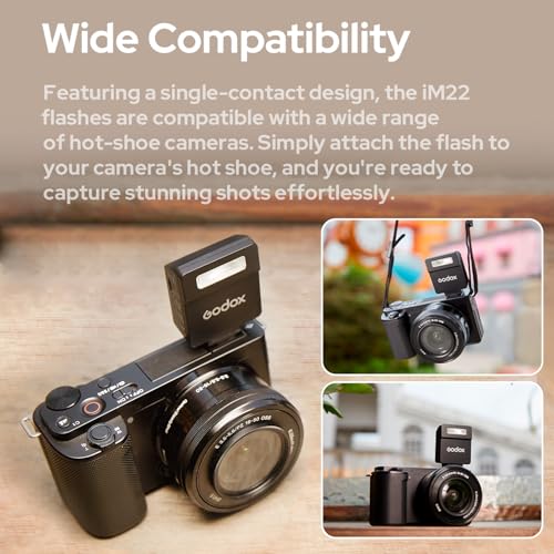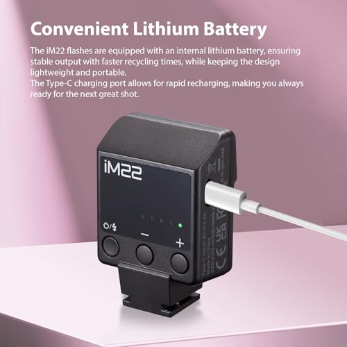 GODOX - غودوكس كاميرا فلاش صغيرة iM22 فلاش على الكاميرا سبيدلايت 5 مستويات طاقة 3 ثوان وقت اعادة التدوير 440 ومضة طاقة كاملة مع بطارية شحن نوع سي بديلة لكاميرات كانون ونيكون وسوني غير العاكسة