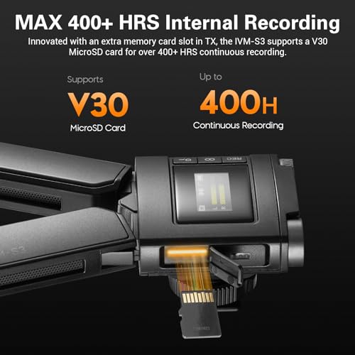 - جهاز التسجيل المستقل الخاص بك: يحتوي جهاز IVM-S3 على فتحة لبطاقة الذاكرة في TX. يدعم بطاقات مايكرو اس دي في 30، مما يوفر أكثر من 400 ساعة من التسجيل المستمر. يجعل جهاز اي في ام-S3 جهاز تسجيل مستقل لا يحتاج إلى توصيله بأجهزة أخرى. يمكنك استخدام وظيفة التسجيل المدمجة في اي في ام-S3 لتسجيل الأصوات الرياضية أو الموسيقى أو الكلام وما إلى ذلك بسهولة.