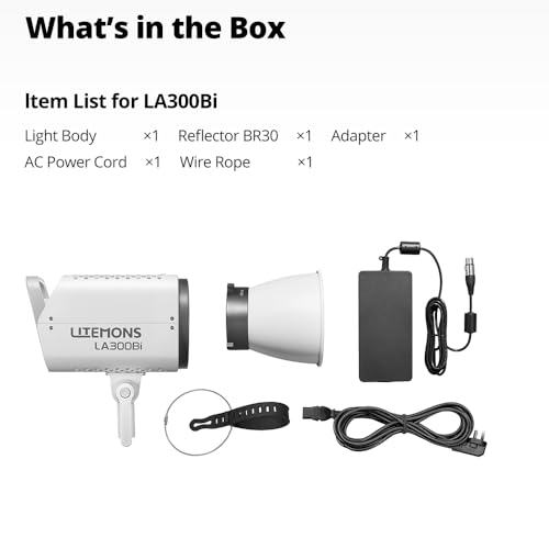 GODOX - مصباح فيديو سي او بي ثنائي اللون LA300Bi لايتمونز، حامل بوين، درجة الحرارة اللونية 2800 كلفن إلى 6500 كلفن مع تعديل 122000 لوكس عند 1 متر، عاكس قياسي BR30 يدعم التحكم في التطبيق من جودوكس