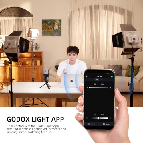 - طريقتان للتحكم: يدعم التحكم عبر تطبيق Godox Light باستخدام البلوتوث، بالإضافة إلى إمكانية التحكم المباشر من جسم الإضاءة نفسه.