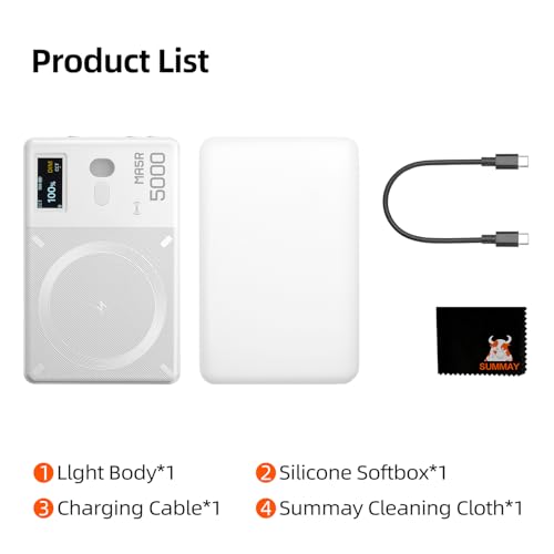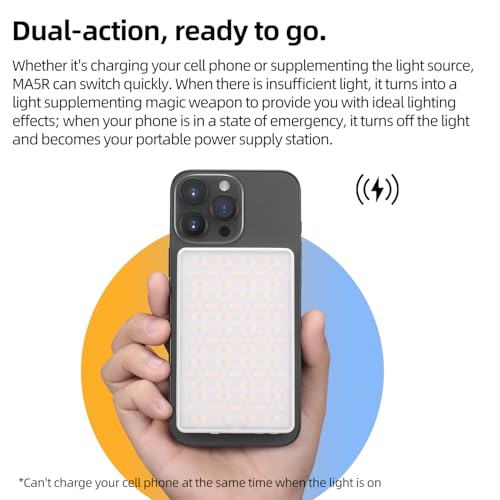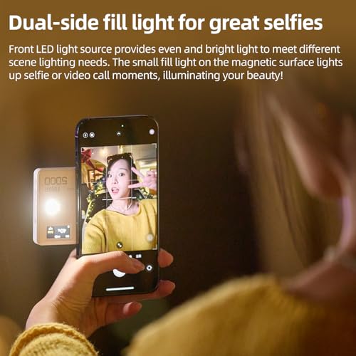 - 【هيكل رفيع للغاية مع تصميم مغناطيسي】يدمج بذكاء ضوء ليد الاحترافي والطاقة المحمولة، مما يحقق الشحن وتجديد الضوء في منتج واحد. هيكل خفيف الوزن وتصميم مغناطيسي، والموبايل الخلوي مناسب بذكاء، لا يشغل مساحة ومريح للسفر.