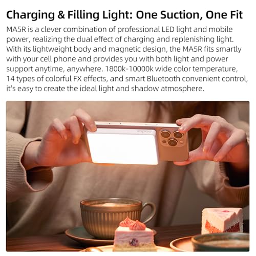 GODOX - إضاءة فيديو ليد بشحن مغناطيسي 4900 مللي أمبير في الساعة بـ14 تأثير ضوئي وتعديل التحكم بمفصل الاتصال قريب المدى للتصوير الفوتوغرافي في الخارج وتصوير مدونات الفيديو المباشر MA5R من جودوكس، أبيض