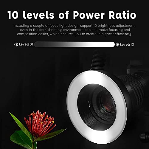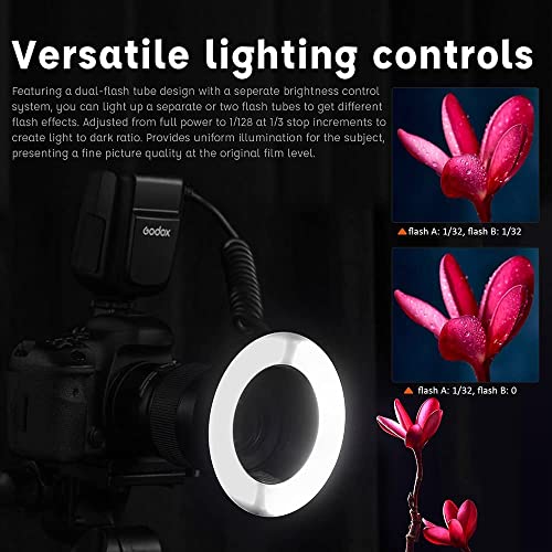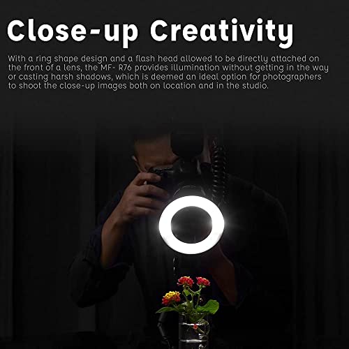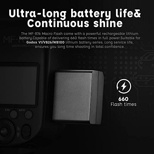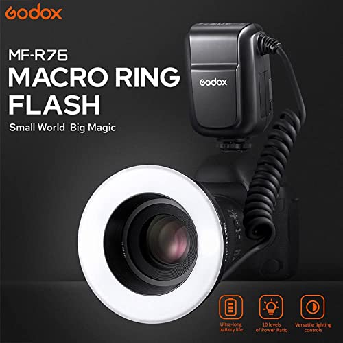 GODOX - مصباح فلاش حلقي ماكرو MF-R76 قابل للتعديل 1/128 الى 1/1 ببطارية ليثيوم قابلة لإعادة الشحن و10 مستويات لنسبة الطاقة من غودوكس