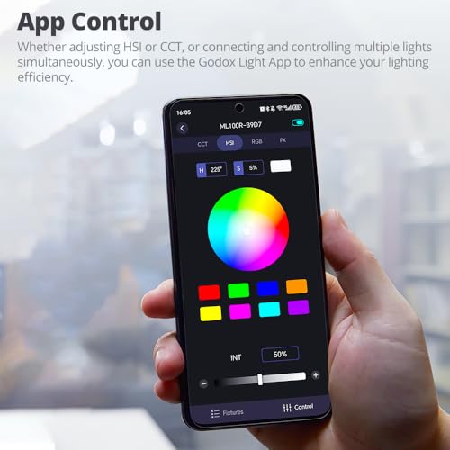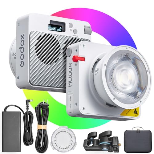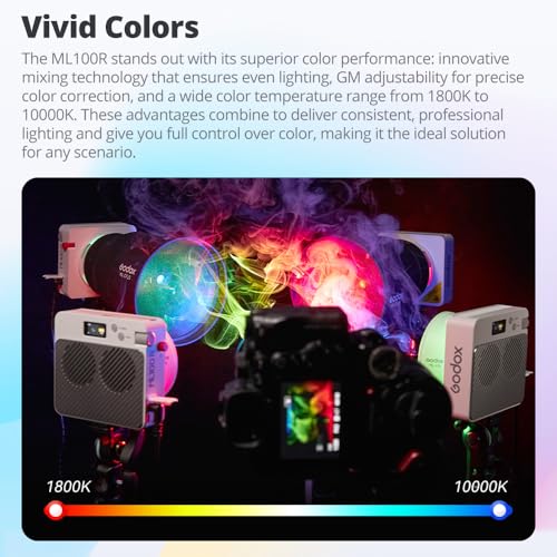 GODOX - مصباح إضاءة ليد فيديو RGB 110 وات ML100R من غودوكس، مجموعة اضاءة فيديو ثنائية اللون 1800-10000 كلفن، CRI 97+/TLCI 98+، تحكم عن طريق التطبيق، 14 تاثير اف اكس، للتصوير/البث المباشر/التصوير في الهواء