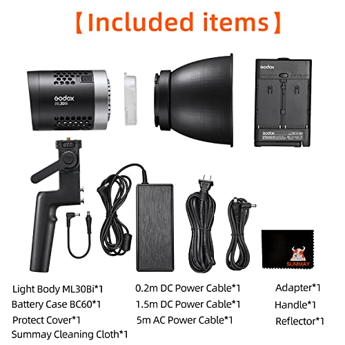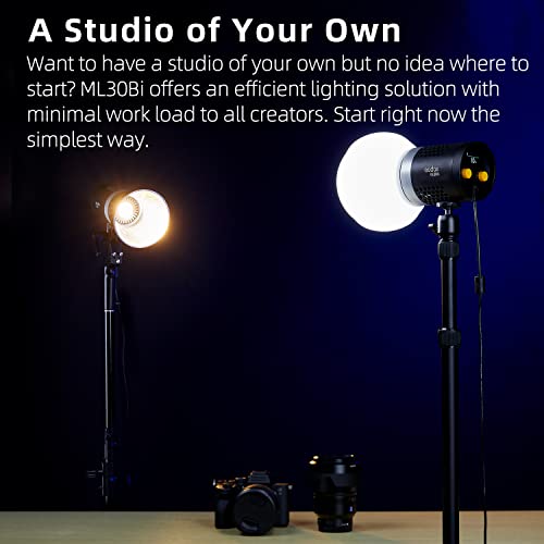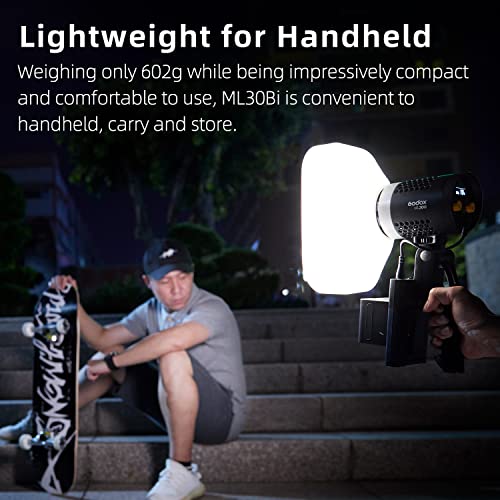 GODOX - جهاز إضاءة فيديو ML30Bi ثنائي اللون من جودوكس للمناسبات وتصوير فيديو وحفلات الزفاف|وقاعدة تثبيت جودوكس|وضع صامت|CRI96 TLCI97|درجة حرارة لون 2800-6500K|7 تأثير إضاءة FX|صغير|إضاءة مستمرة محمولة 40 وات