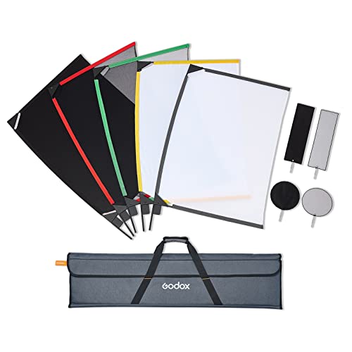 GODOX - لافتة قماشية قابلة للطي من غودوكس SF6090، طقم مع 5 قطع من الأعلام بأبعاد 60 × 90 سم لتشكيل وحجب وتوزيع الضوء بشكل متعدد الاستخدامات وقابل للحمل للتصوير الفوتوغرافي مع شنطة حمل