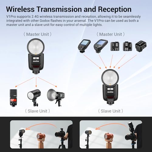 GODOX - مجموعة فلاش سبيدلايت V1 برو اف /F V1 برو برأس دائري متوافقة مع فوجي فيلم 2.4G لاسلكي TTL، سبيد لايت اتش اس ستروب لفوجي، 1/8000s، بطارية ليثيوم ايون 2980mAh، فلاش فرعي قابل للفصل يدعم نوع سي من جودوكس