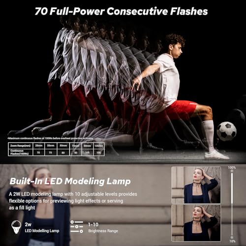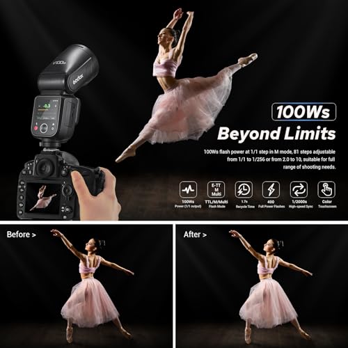 - [أداء سريع وتوافق ممتد]: تم تصميم V100-C ليتفوق الأداء، ويدعم سرعات الغالق تصل إلى 1/80,000 ثانية مع تي تي ال، مما يجعله لعبة - مغير للعمل والتصوير الساطع والخفيف. يتيح نظام التبريد المتطور 70 - 100 ومضة طاقة كاملة متتالية عند 100 واط. وأفضل جزء؟ متوافق تمامًا مع جميع ملحقات V1، مما يضمن انتقالًا سلسًا لمستخدمي V1 الحاليين الذين يتطلعون إلى رفع مستوى.