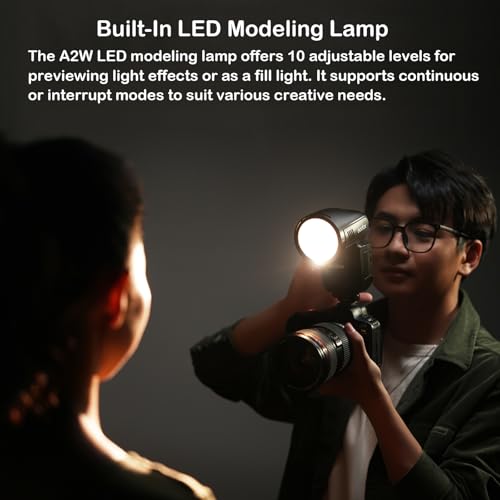 - مصباح LED مدمج: يوفر مصباح النمذجة LED A2W 10 مستويات قابلة للتعديل لمعاينة تأثيرات الإضاءة أو كضوء ملء. يدعم الأوضاع المستمرة أو المتقطعة لتلبية الاحتياجات الإبداعية المختلفة.