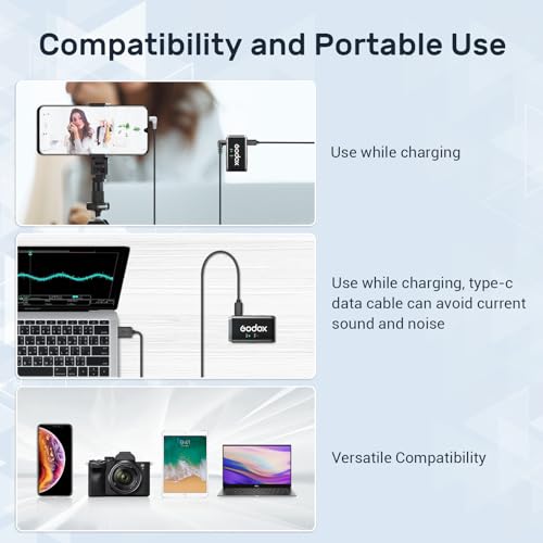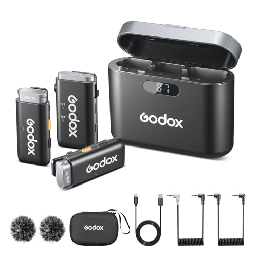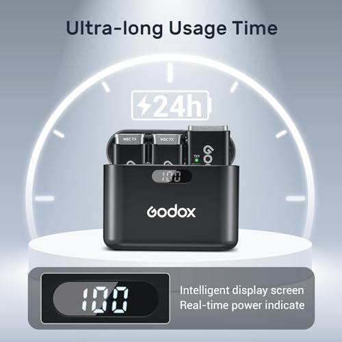 GODOX - ميكروفون عنقي لاسلكي كيت 2 WEC، بخاصية إلغاء الضوضاء، نطاق 200 متر، عمر بطارية 24 ساعة، للموبايل الذكي كاميرا تسجيل الفيديو واليوتيوب من جودوكس، أسود، أحادى