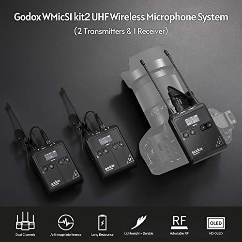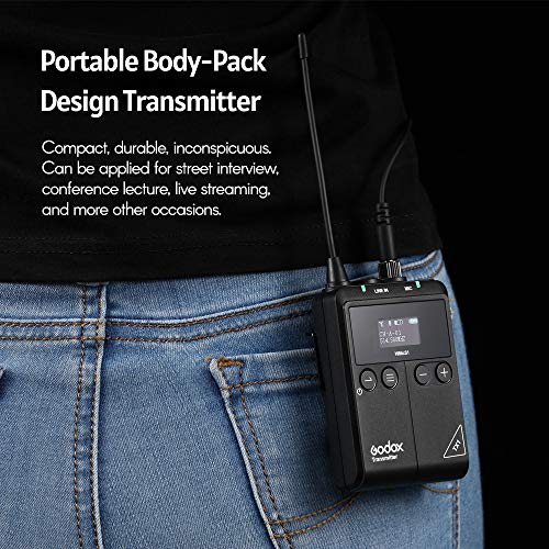 GODOX - نظام ميكروفون لاسلكي WMicS1 UHF من جودوكس، للكاميرا والموبايل الذكي والمولف الصوتي والمسجل ومقابلات الشارع والمؤتمرات والمحاضرات والبث المباشر وتصوير المدونات، متعدد الاتجاهات، أسود