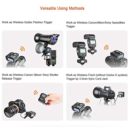 - متوافق مع الفلاش من جودوكس -- سلسلة X2T مع نظام X لاسلكي مدمج 2.4G، سيكون X2TS لسوني متوافقًا مع فلاش غودوكس والوميض والأضواء الأحادية. يعمل بشكل مثالي مع جودوكس V1S TT685S TT685II-S TT350S V860II-S V860III-S TT600 AD200 AD200Pro AD400Pro AD600Pro وما إلى ذلك.
