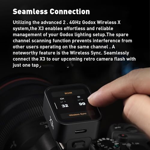 - 【اتصال لاسلكي 2.4 جيجاهرتز】 باستخدام نظام جودوكس اكس اللاسلكي المتطور 2.4 جيجاهرتز، يمكّنك جهاز إرسال الفلاش X3C من إدارة إعدادات إضاءة جودوكس بسهولة وموثوقية. تمنع وظيفة مسح القناة الاحتياطية التداخل من المستخدمين الآخرين الذين يعملون على نفس القناة.