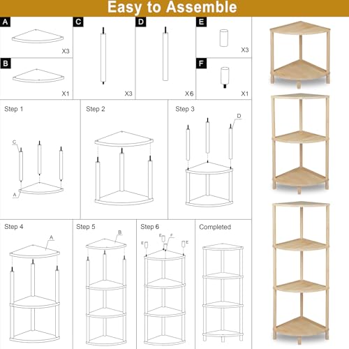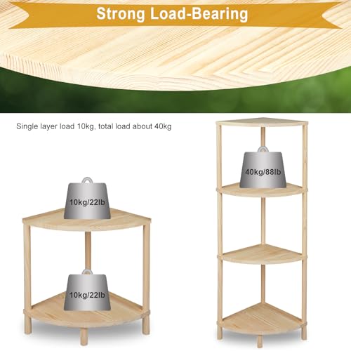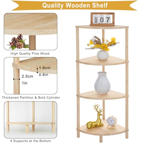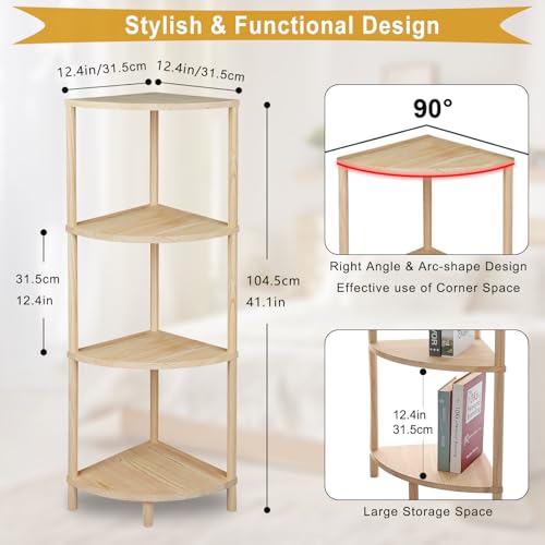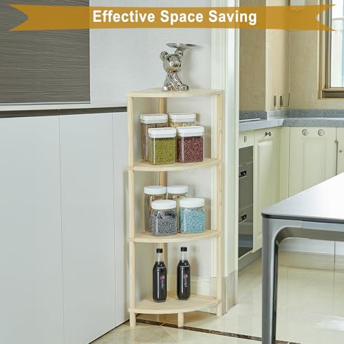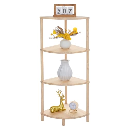 GOENMOOL - وحدة أرفف زاوية، رف عرض أرفف زاوية خشبية مكون من 4 طبقات، وحدة أرفف زاوية متعددة الأغراض لغرفة المعيشة وغرفة النوم ومنظم تخزين المطبخ والحمام، 31.5 × 31.5 × 104.5 سم من جوينمول