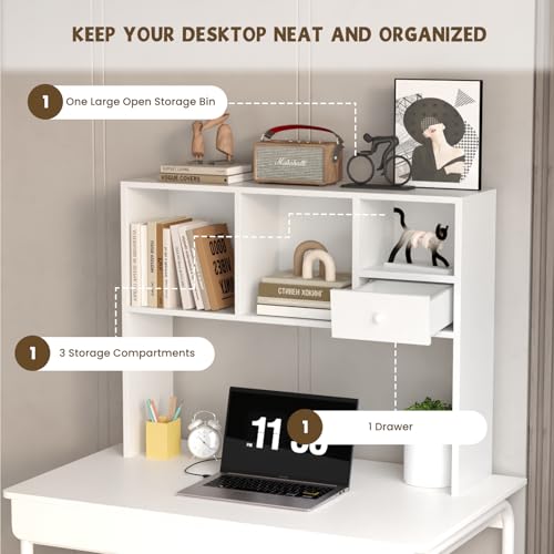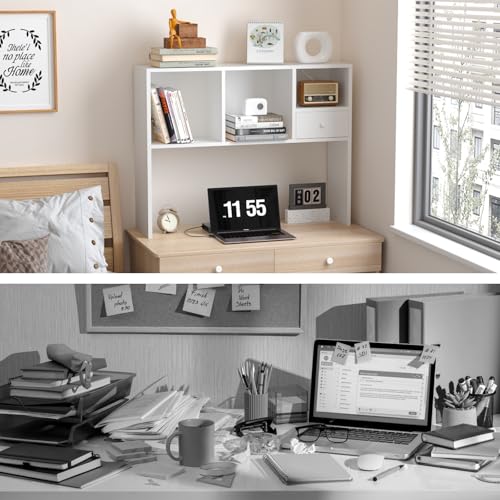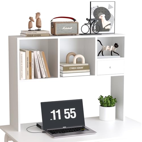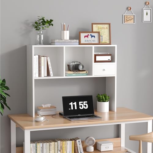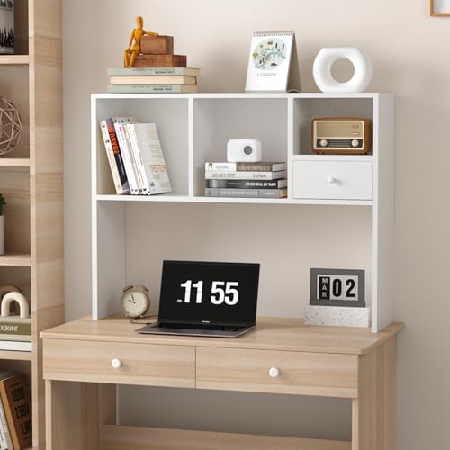 GOFEI - منظم مكتب علوي خشب متين وأنيق بـ 3 رفوف و1 درج، حامل تخزين مكتب متعدد الأغراض للمنزل والمكتب والسكن الجامعي من جوفي
