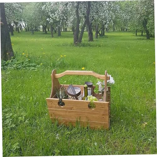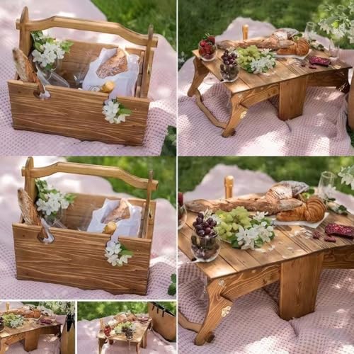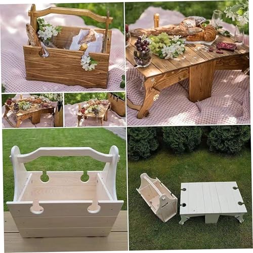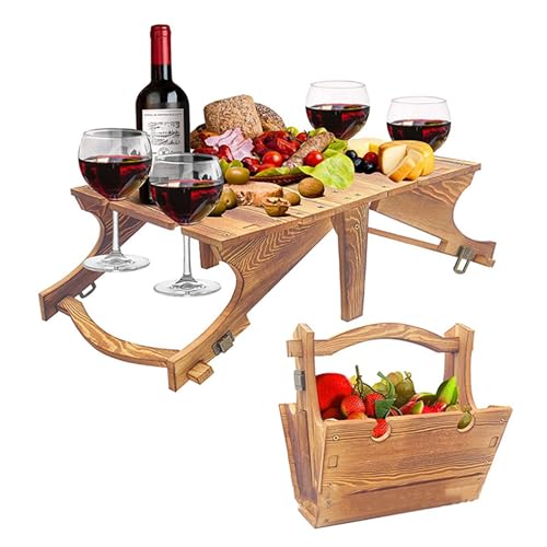 GofMicd - طاولة سلة خشبية قابلة للطي 2 في 1 من جوفميسد مع حامل اكواب نبيذ، طاولة تخزين خارجية محمولة للتخييم والشاطئ هدية لمحبي النبيذ، 11.8 × 9.1 × 5.9 انش