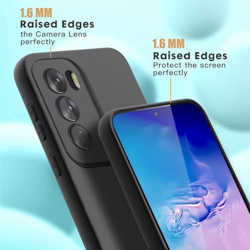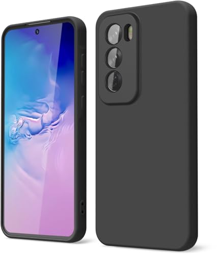GOGME - جراب حماية من السيليكون السائل مع بطانة من المايكروفايبر بتصميم رفيع وناعم من البولي يوريثين المقاوم للحرارة مقاوم للخدوش والصدمات لموبايل أوبو رينو 12 برو 5G/رينو برو 12 5G من جوجمي، لون أسود