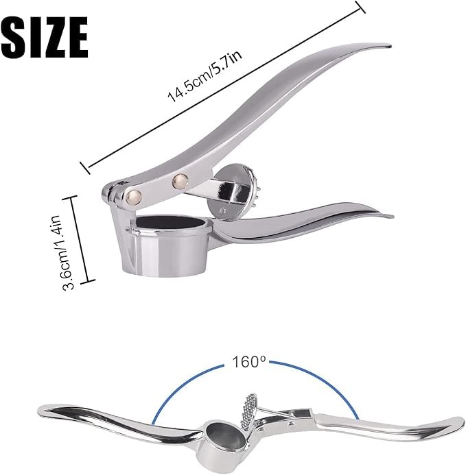 - تصميم يد مريحة: توفر المقابض الطويلة المنحنية قبضة مريحة ورافعة ممتازة، مما يجعل من السهل عصر الثوم بأقل جهد
