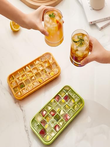 - 【تصميم مبتكر لتحرير مكعبات الثلج】- قالب مكعبات الثلج بتصميم مبتكر للإطلاق يجعل من السهل تحرير مكعبات الثلج. بضغطة بسيطة على الزر الأخضر على الغطاء، يمكنك بسهولة إخراج مكعبات الثلج من القالب دون أي متاعب. تخلص من معاناة لف قوالب مكعبات الثلج التقليدية والنقر عليها.