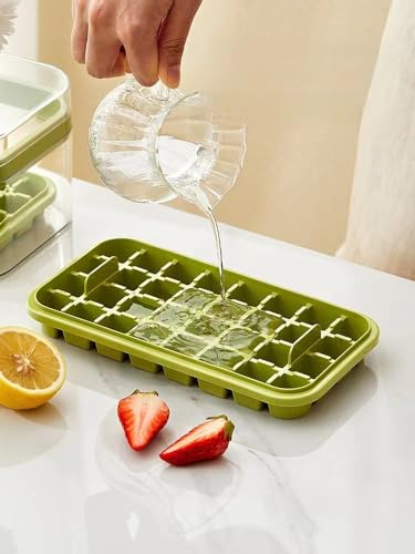 - 【عبوة كاملة】- تحتوي العبوة على قالبين من مكعبات الثلج باللون الأخضر، كل منهما يحتوي على 32 فتحة، مما يوفر إجمالي 64 مكعب ثلج. وتتضمن العبوة حاوية شفافة وغطاء لتخزين مكعبات الثلج بشكل مريح. علاوة على ذلك، تتضمن مغرفة ثلج لسهولة التقديم. مع هذه العبوة الكاملة، لديك كل ما تحتاجه لصنع مكعبات الثلج وتخزينها بدون متاعب.