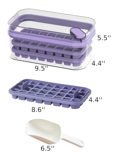 GOHOLE - قوالب مكعبات الثلج مع غطاء وحاوية من جوهول، عبوة من قطعتين من قوالب مكعبات الثلج مع 64 قالبًا لتجميد مكعبات الثلج (لون أرجواني)