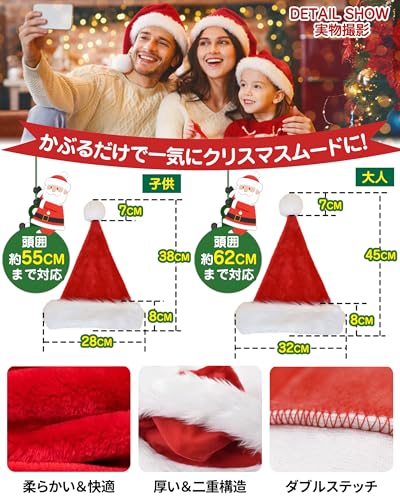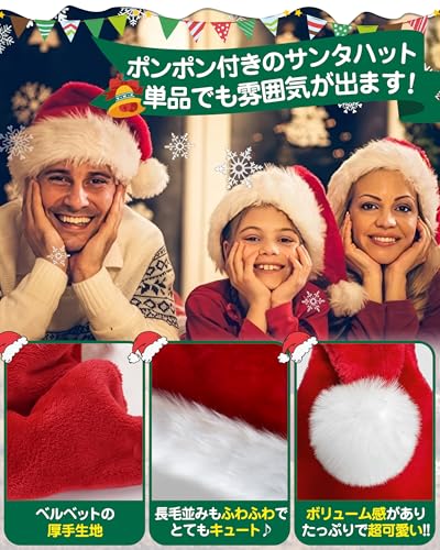 GOKEI - طاقية سانتا كلوز للكريسماس للكبار من جوكيه، طاقية كريسماس سميكة ودافئة ومنفوشة للمناسبات التنكرية، طاقية سانتا كلوز بلون أحمر، زي سانتا كلوز للبنات والأولاد