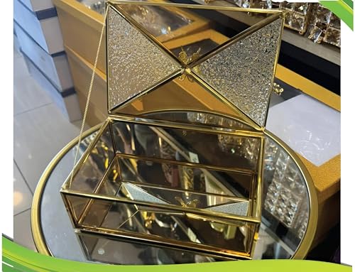 - يتميز التصميم بقاعدة معدنية لامعة مطلية بالذهب مع طبق زجاجي فاخر، مما يخلق تباينًا مذهلاً يعزز المظهر البصري لأي شيء يتم عرضه أو تقديمه عليه.