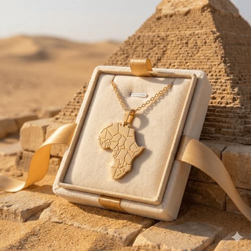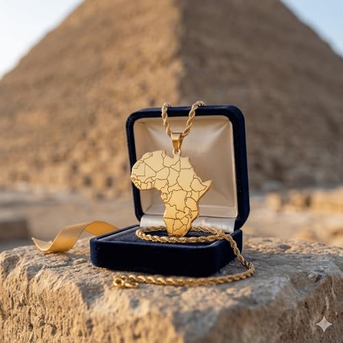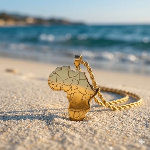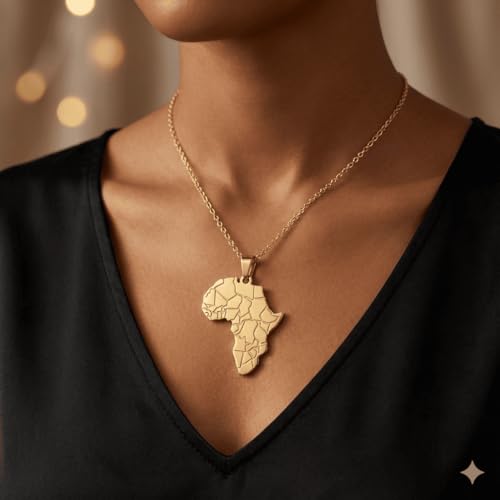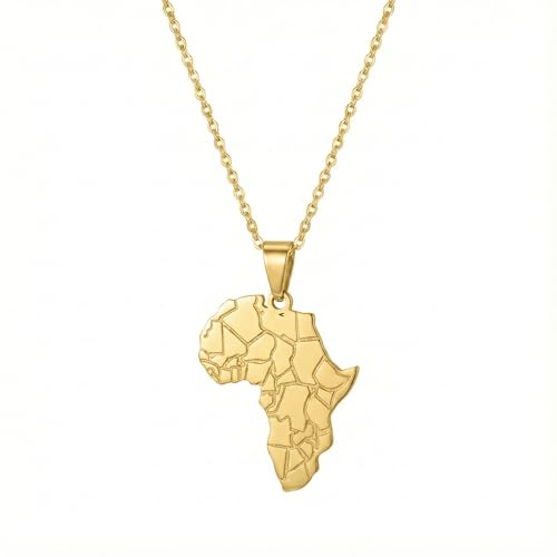 Generic - سلسلة بدلاية خريطة قارة إفريقيا الذهبية | تصميم أيقوني منقوش بالدول | من الاستانلس ستيل المقاوم للصدأ | قلادة أنيقة ومناسبة كهدية تذكارية للمغتربين ومحبي القارة