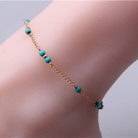 Other - خلخال ذهبى لأقدام الجميلات مع خرز فيروزى رقم الصنف 586 - 17 - 6 للنساء