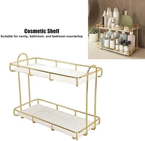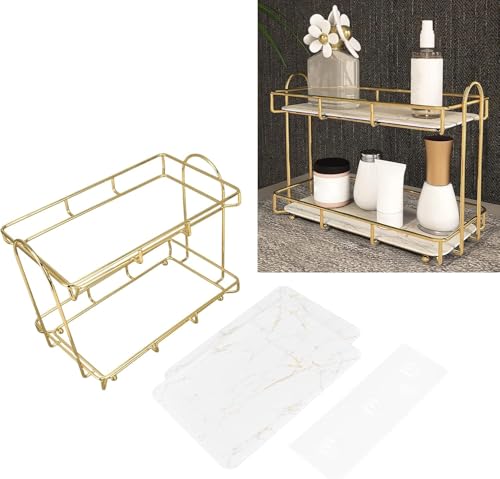 Generic - منظم معدني من طبقتين مقاوم للصدأ مع صينية رخامية لديكور المنزل وللحمام والمكياج، لون ذهبي، قطعتان