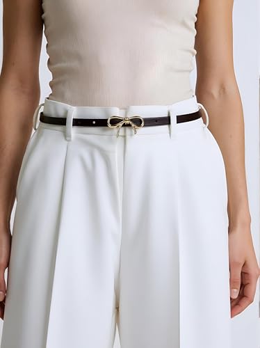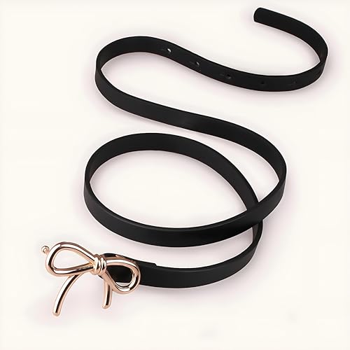 Generic - حزام ذهبي بفيونكة - حزام ذهبي اللون يتميز بفيونكة مزخرفة، مظهر نحيف مثالي للفساتين والجينز والتنانير، مقاس قابل للتعديل، ملمس جلدي ناعم، لمسة نهائية مثالية لأيام الجينز.