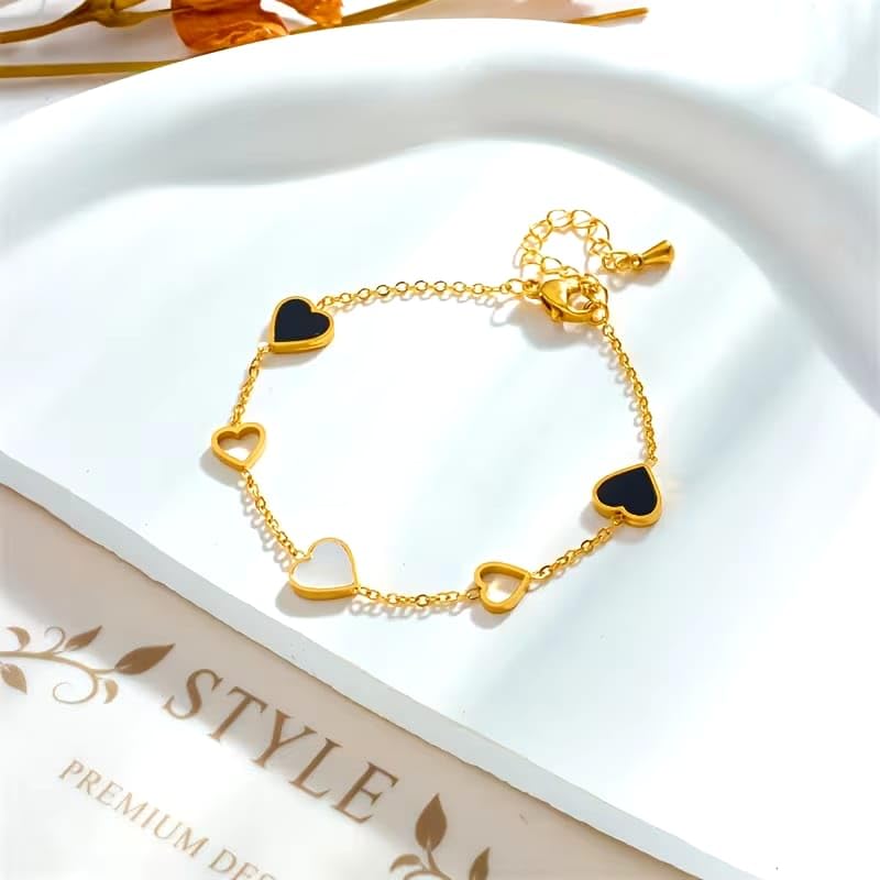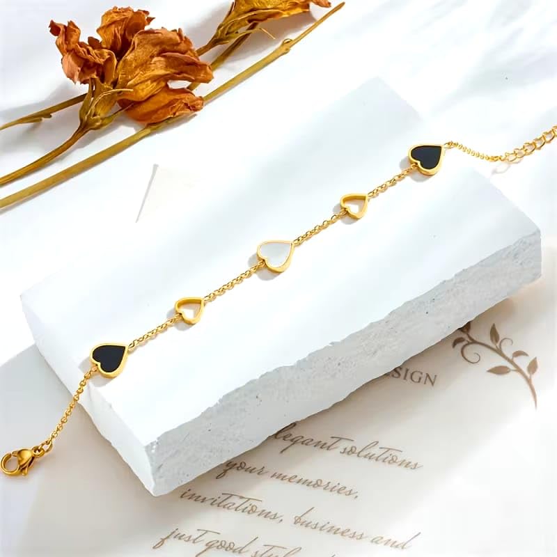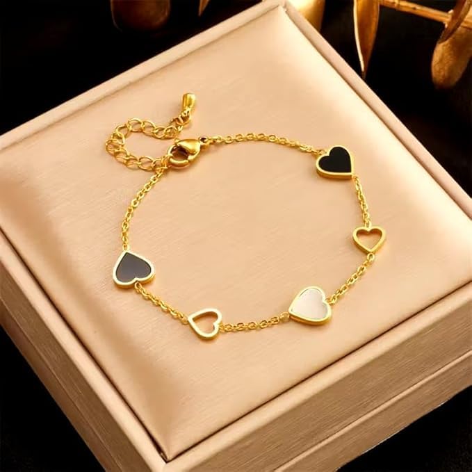 Generic - سوار ذهبي بقلوب ملونة، سلسلة رقيقة بقفل كلاب، تصميم أنيق للنساء